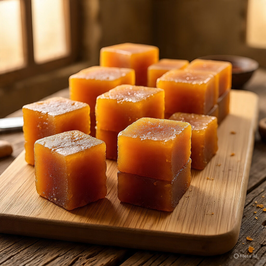"Natural jaggery cubes, made from pure sugarcane juice. Perfect for sweetening tea, coffee, or as a healthy sugar substitute in recipes. Rich in minerals like iron & calcium.